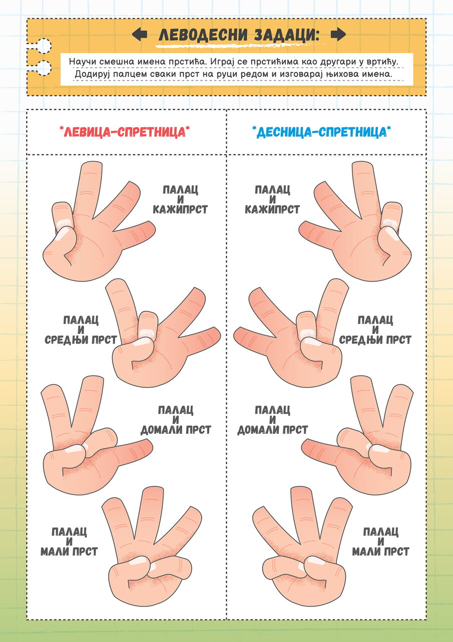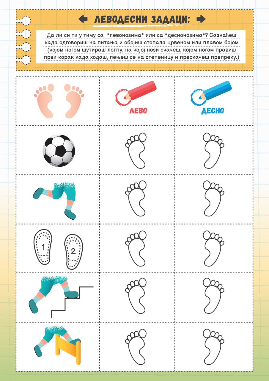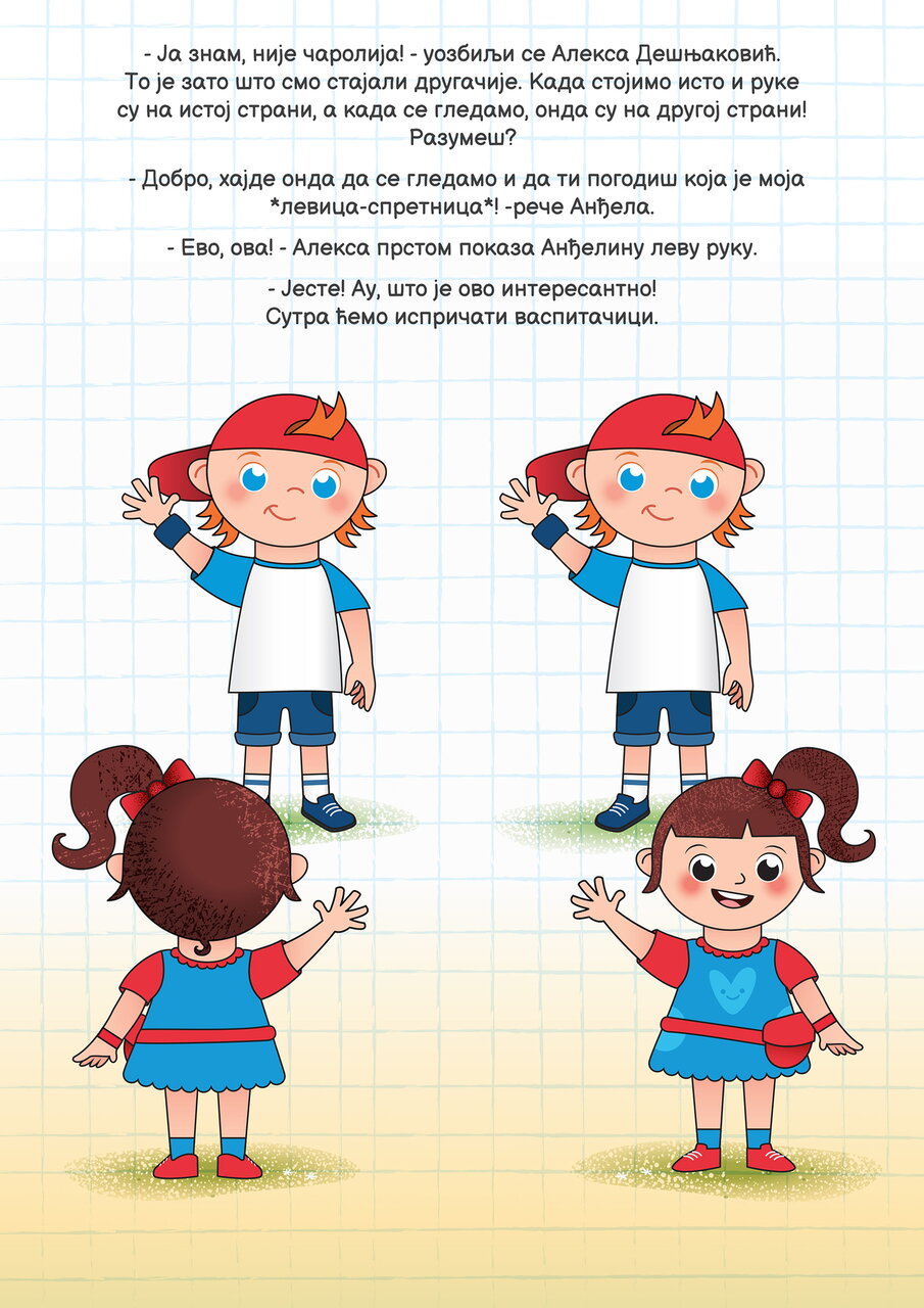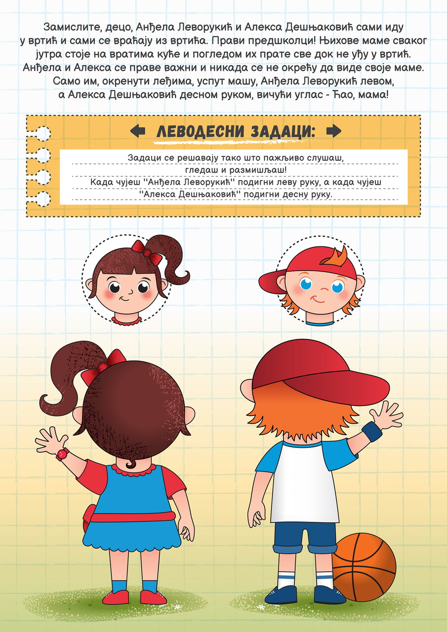 Uz pokret, imitaciju i *levodesne* zadatke Anđele Levorukić i Alekse Dešnjakovića, veselo i sa lakoćom stiže se do cilja, a to je detetov potpun doživljaj sebe u prostoru.