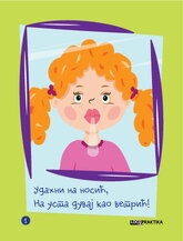 Način upotrebe je opisan u kratkim pesmicama na svakoj karti, tako da dete lako shvati i izvede pokret slušajući i gledajući.