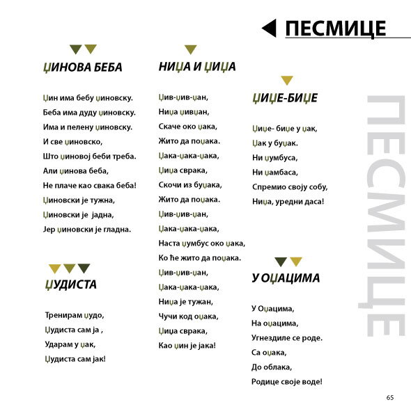 Logopraktikum: foneme ČDŽŠŽ ima nekoliko celina. Prvi deo koji sadrži logatome, rečnik, rečenice i auditivnu diskriminaciju, odnosi se na svaku pojedinačnu fonemu tj. na fonemsko-fonološki i jezički nivo, dok ostali delovi praktikuma služe za rad na gramatičko-sintaksičkom, semantičkom i pragmatičkom nivou jezičkog funkcionisanja, sa ciljem da se automatizuje i funkcionalno primenjuje pravilan izgovor glasova. Ovaj deo sadrži autorske pesmice i priče u kojima dominiraju foneme č,dž,š i ž, zatim, liste antonima i sinonima, komparacije, kao i pitalice i brzalice koje se odnose na stimulaciju razvoja ili rekonstrukciju narušene jezičke strukture, odnosno, na kognitivni i perceptivni nivo jezičkog funkcionisanja i govornu produkciju.. Na kraju praktikuma je ''Logoalbum'' sa ilustracijama naše drage prijateljice, ilustratora i dizajnera Isidore Mačković. Vizuelni sadržaj se koristi za podsticanje imenovanja, razumevanje govora i za lakše usvajanje i primenu novonaučenih glasova, reči i rečenica.